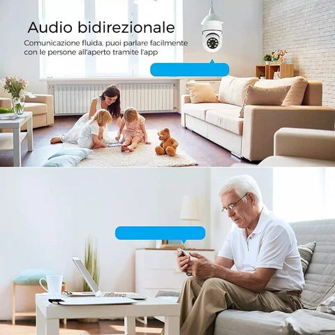 Microfono e altoparlante integrati, la telecamera di sicurezza della lampadina può avere una conversazione tra te e il tuo visitatore. Se avete domande, non esitate a contattarci. Forniamo supporto tecnico e servizi a vita.